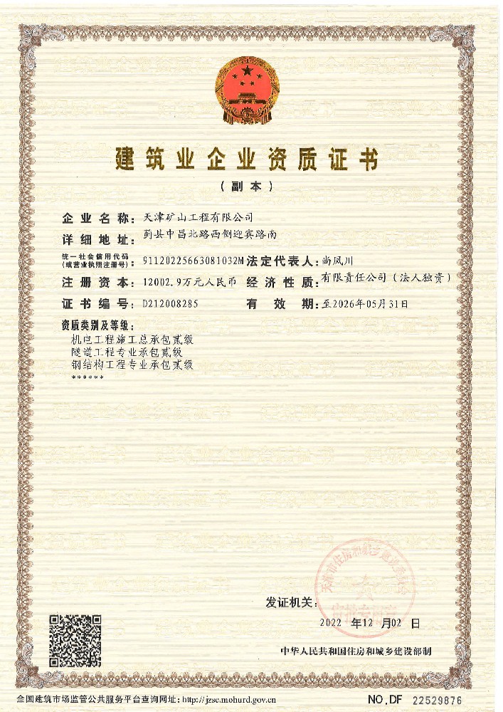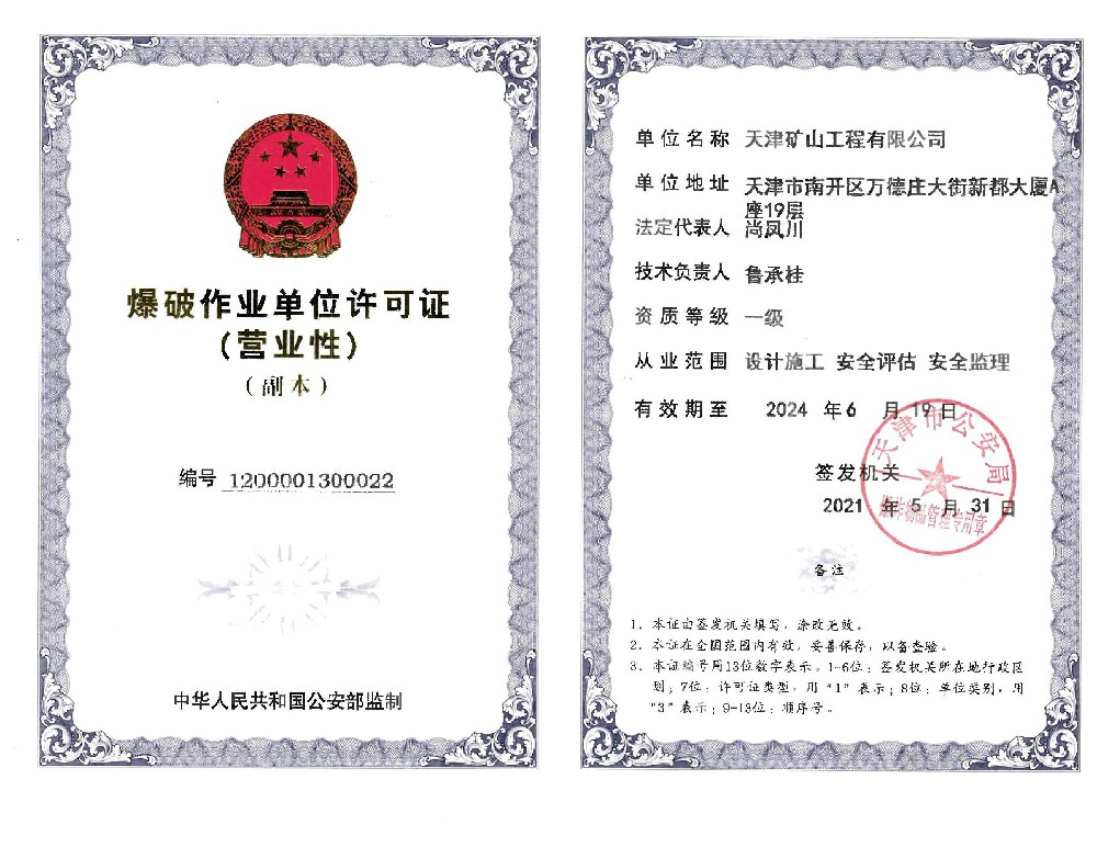 天津礦山工程有限公司(以下簡稱公司)始建于1965年,隸屬中國建材集團(tuán)有限公司,是從事礦山總承包、礦山開采運(yùn)營、礦山設(shè)計與咨詢、土石方爆破、生態(tài)恢復(fù)治理、鋼結(jié)構(gòu)制作安裝、機(jī)電設(shè)備安裝以及工程測量的專業(yè)化礦山施工企業(yè)和礦山開采運(yùn)營總承包服務(wù)商。具備礦山總承包和爆破雙一級資質(zhì)。 公司始建于1965年,總部位于天津市···